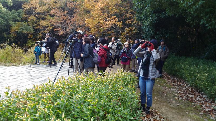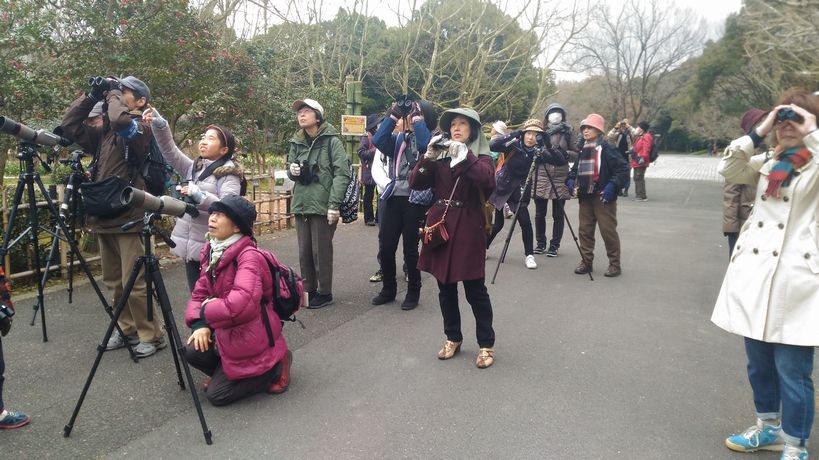 - ヒヨドリを見る人々(撮影:平さん)