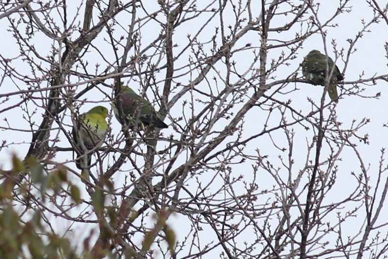 - 日本庭園で吹雪の中、アオバトを見ることができました(撮影:平さん)