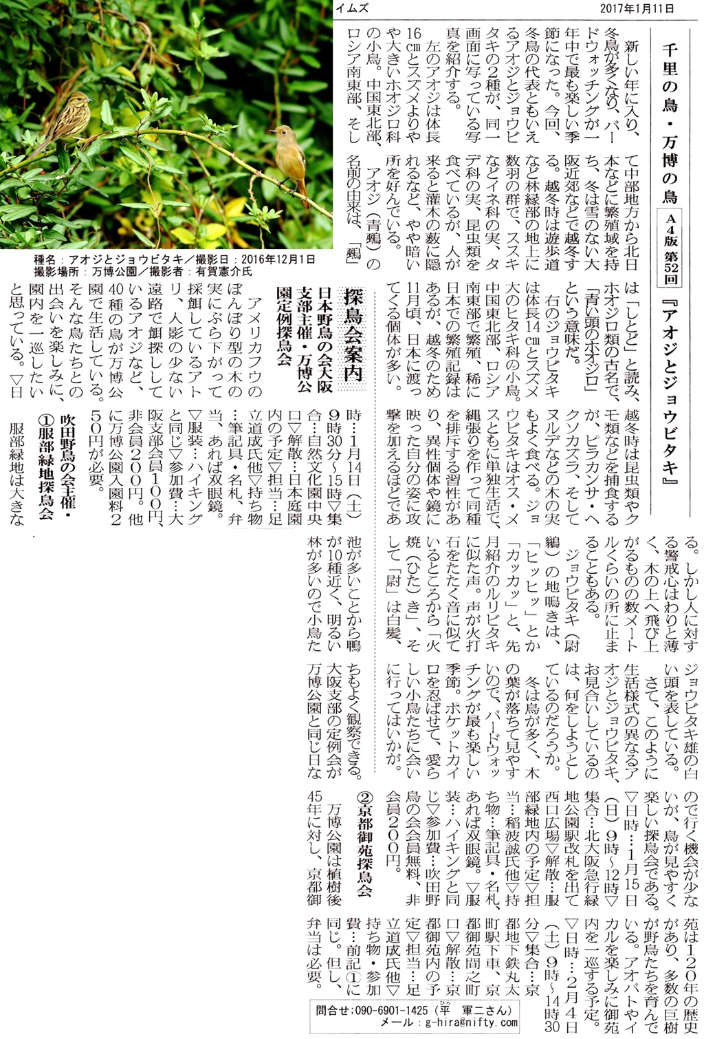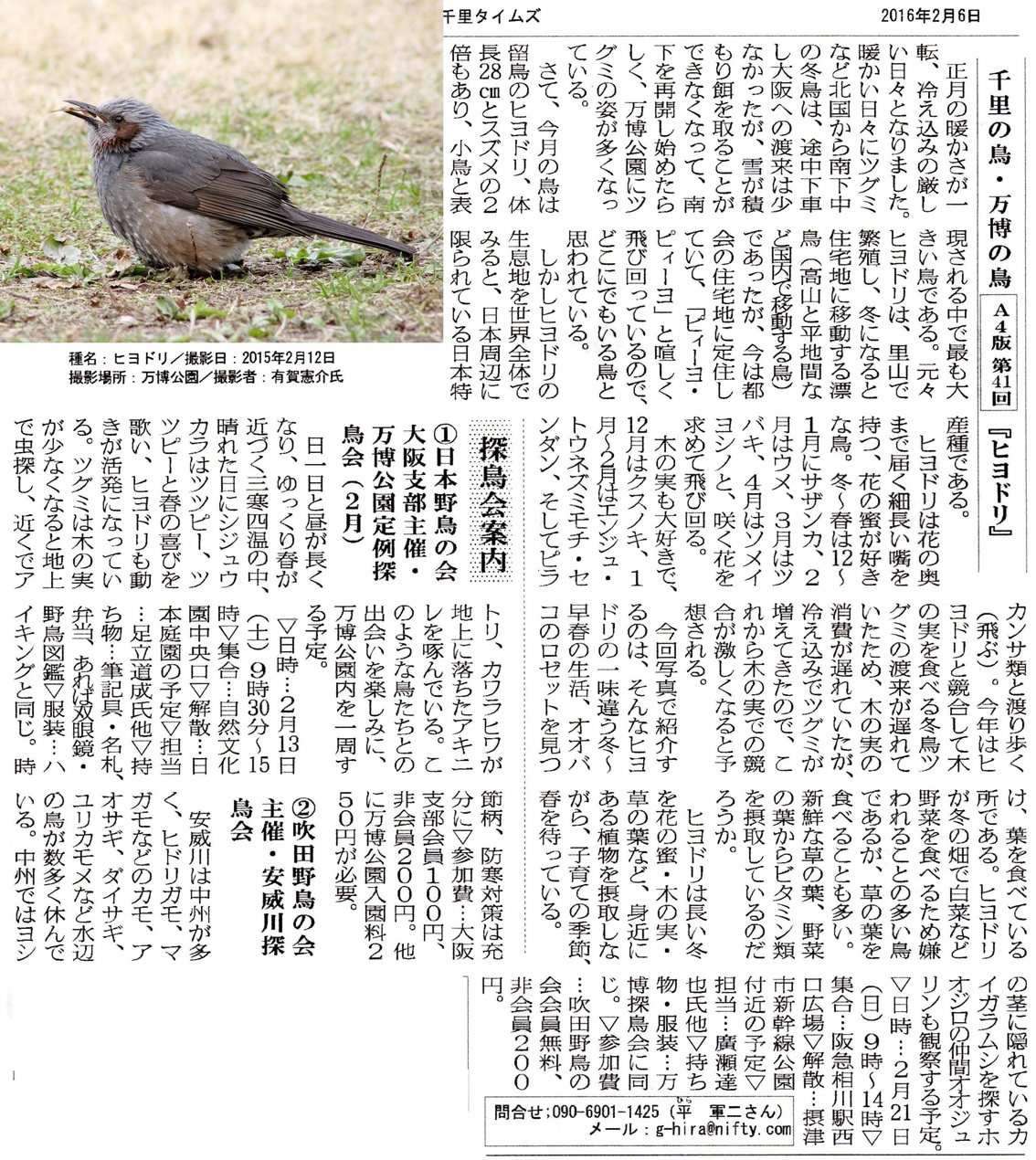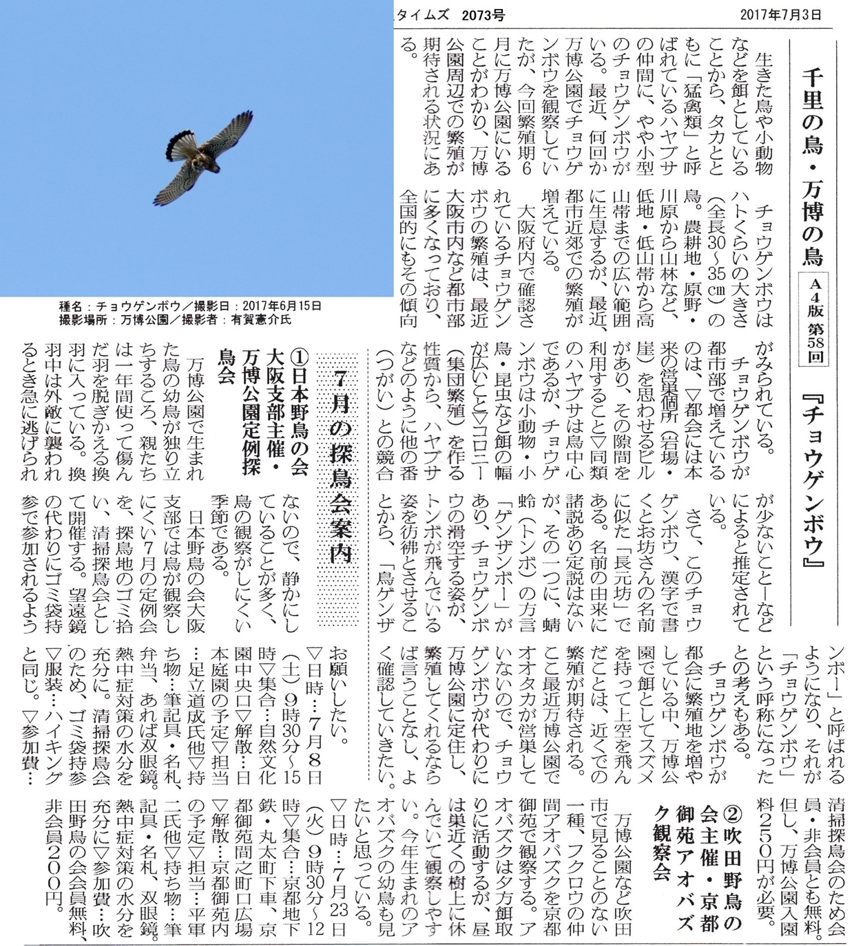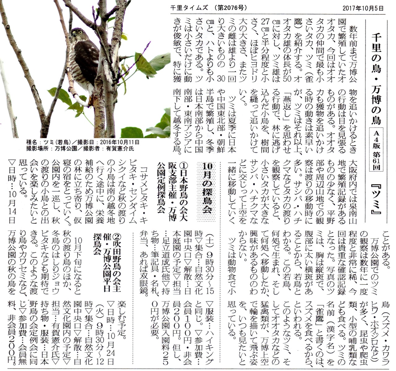 また普通種だが、万博公園では1年に1回見るかどうかのトビが3か月連続で観察されたのも興味深い。