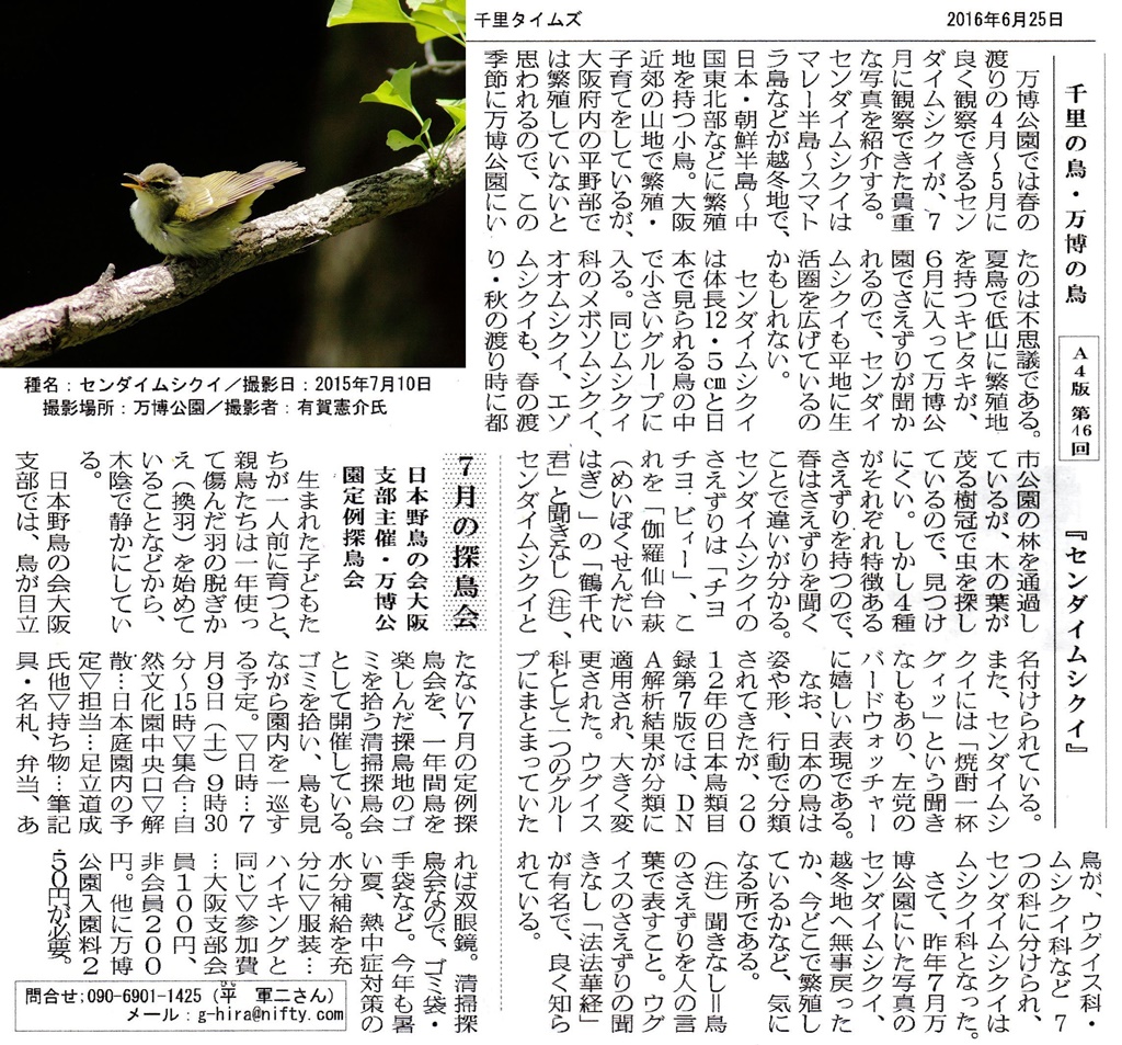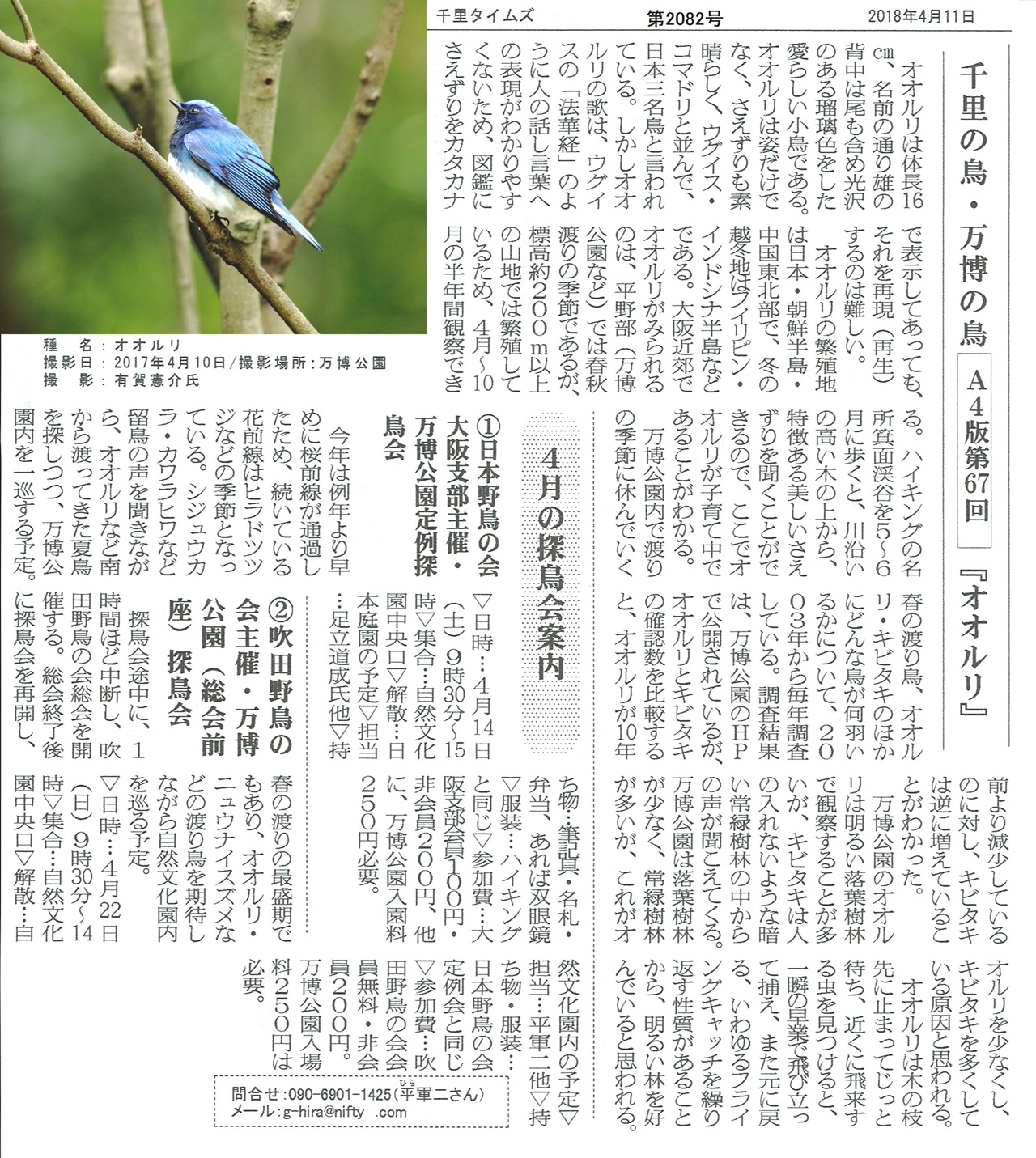 キビタキのメスを見た人もあり、昨年に続いての繁殖が期待される。