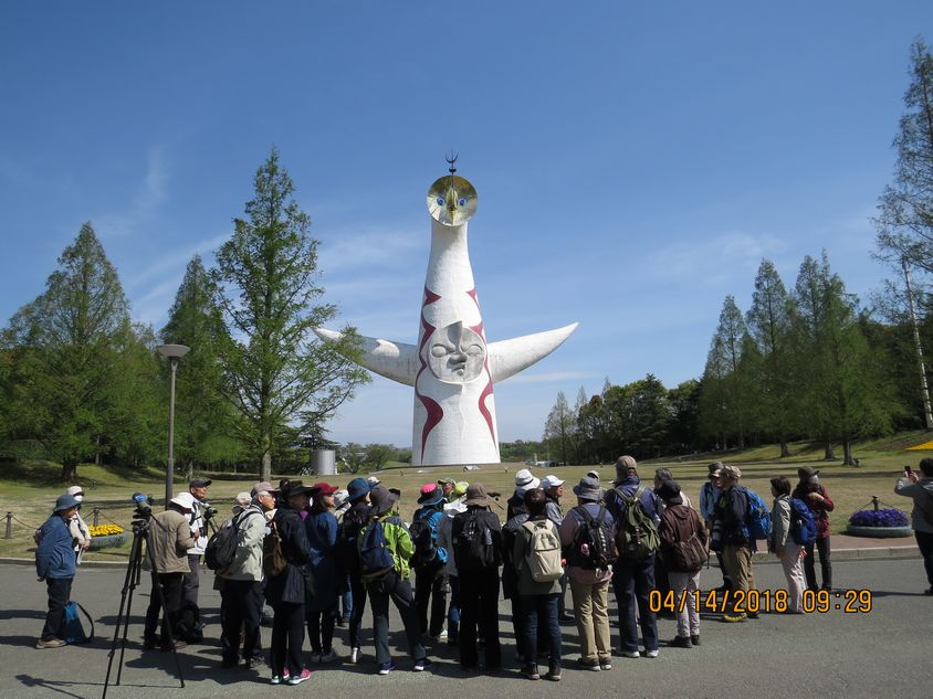 ①快晴のもと太陽の塔前でスタート、②ツグミ、③アトリ雄、④アトリ雌