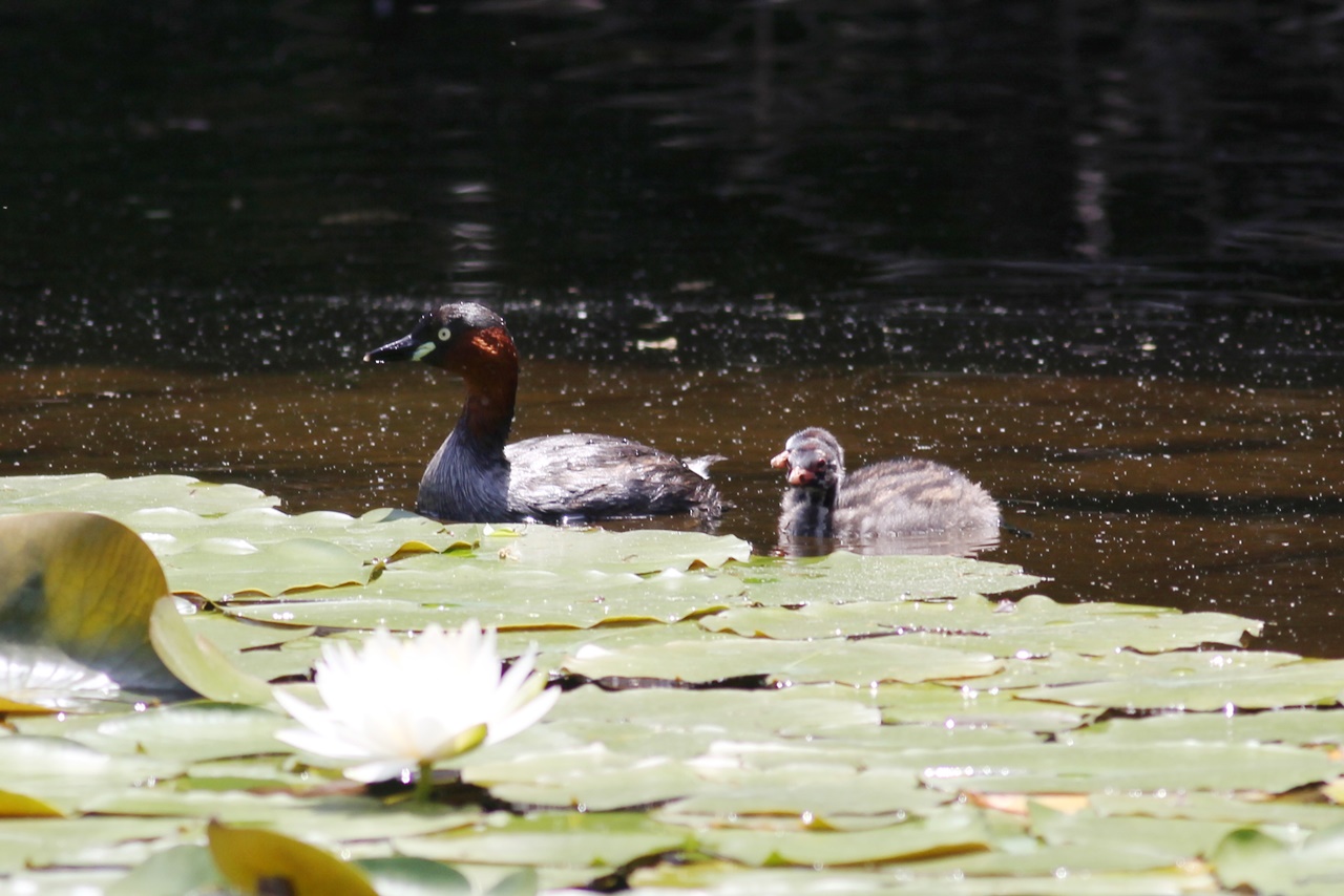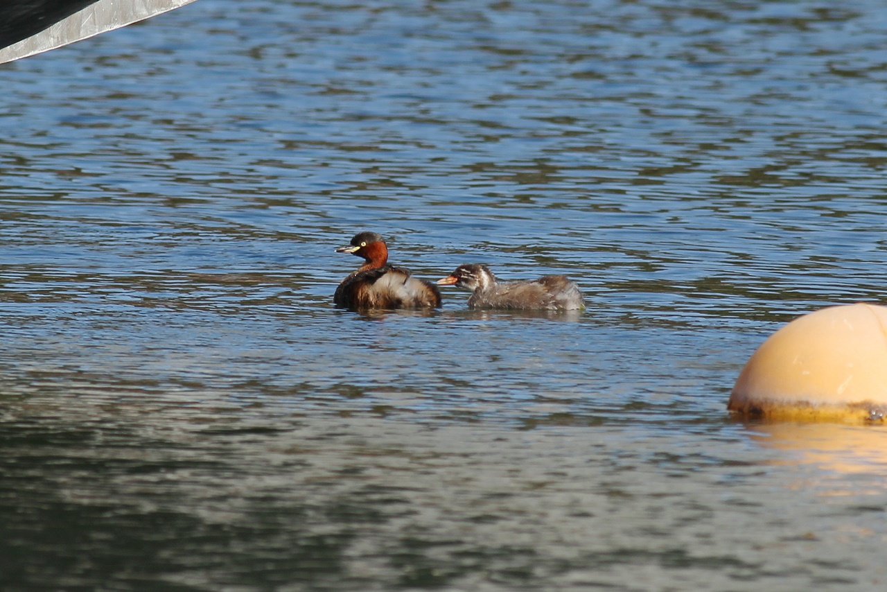また親鳥から餌をもらうカイツブリの幼鳥を、この遅い季節に観察できた。