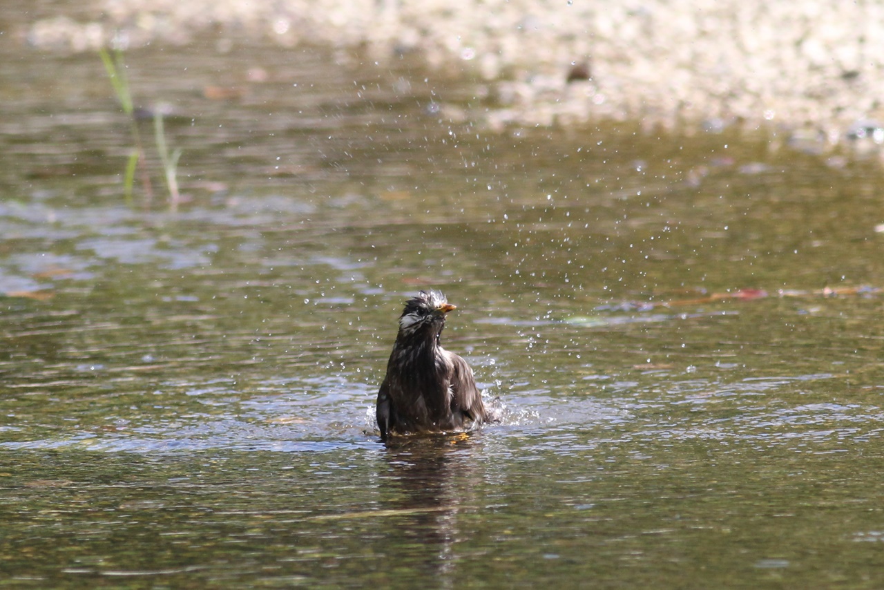 ムクドリの水浴び(撮影:橋本昌宗さん)