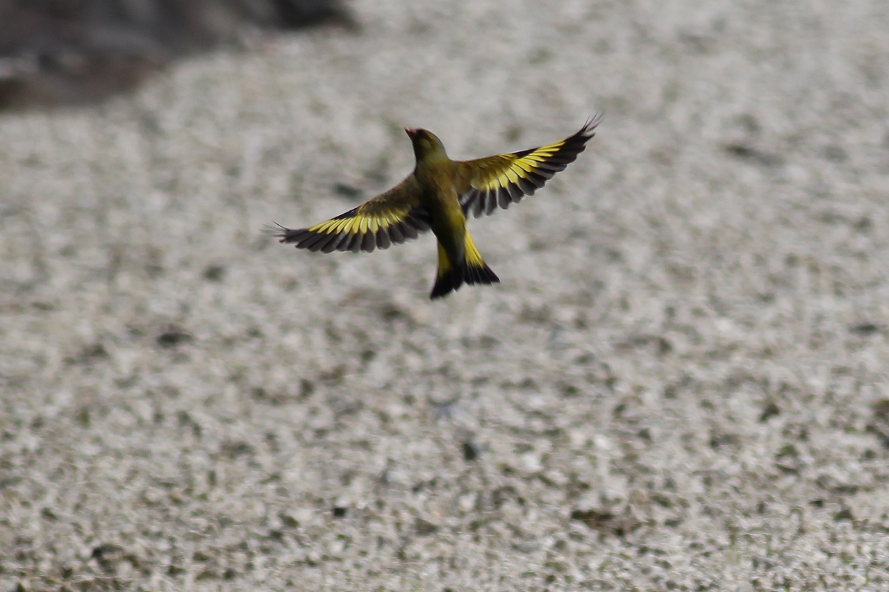 水浴びから飛び立つカワラヒワ(撮影:橋本昌宗さん)