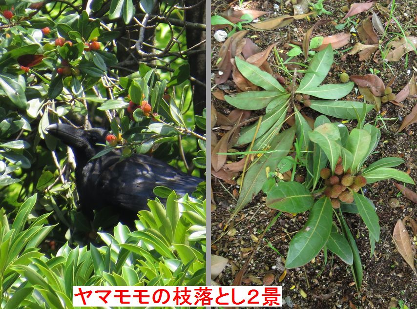 カラスによるヤマモモの枝落とし(撮影:平さん)