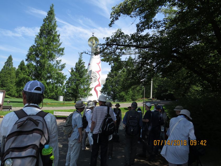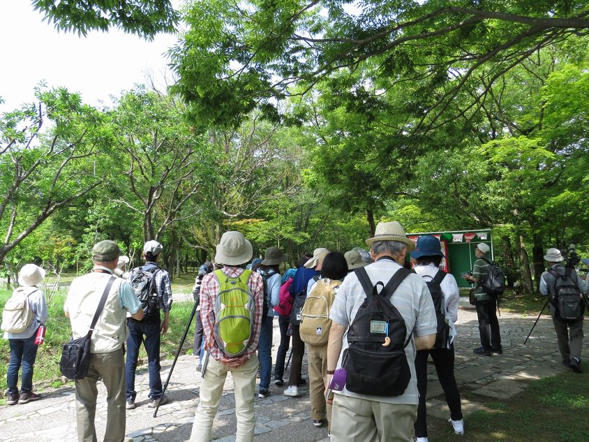 今月も猛暑の中での探鳥会。熱中症に注意して、時折り木陰で休憩を取りながら公園内を歩いた。