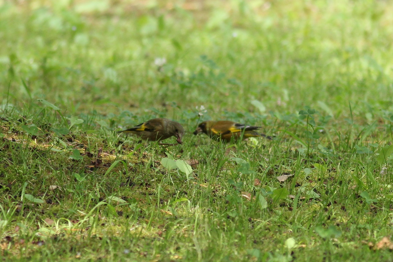 カワラヒワの幼鳥と成鳥(撮影:橋本さん)