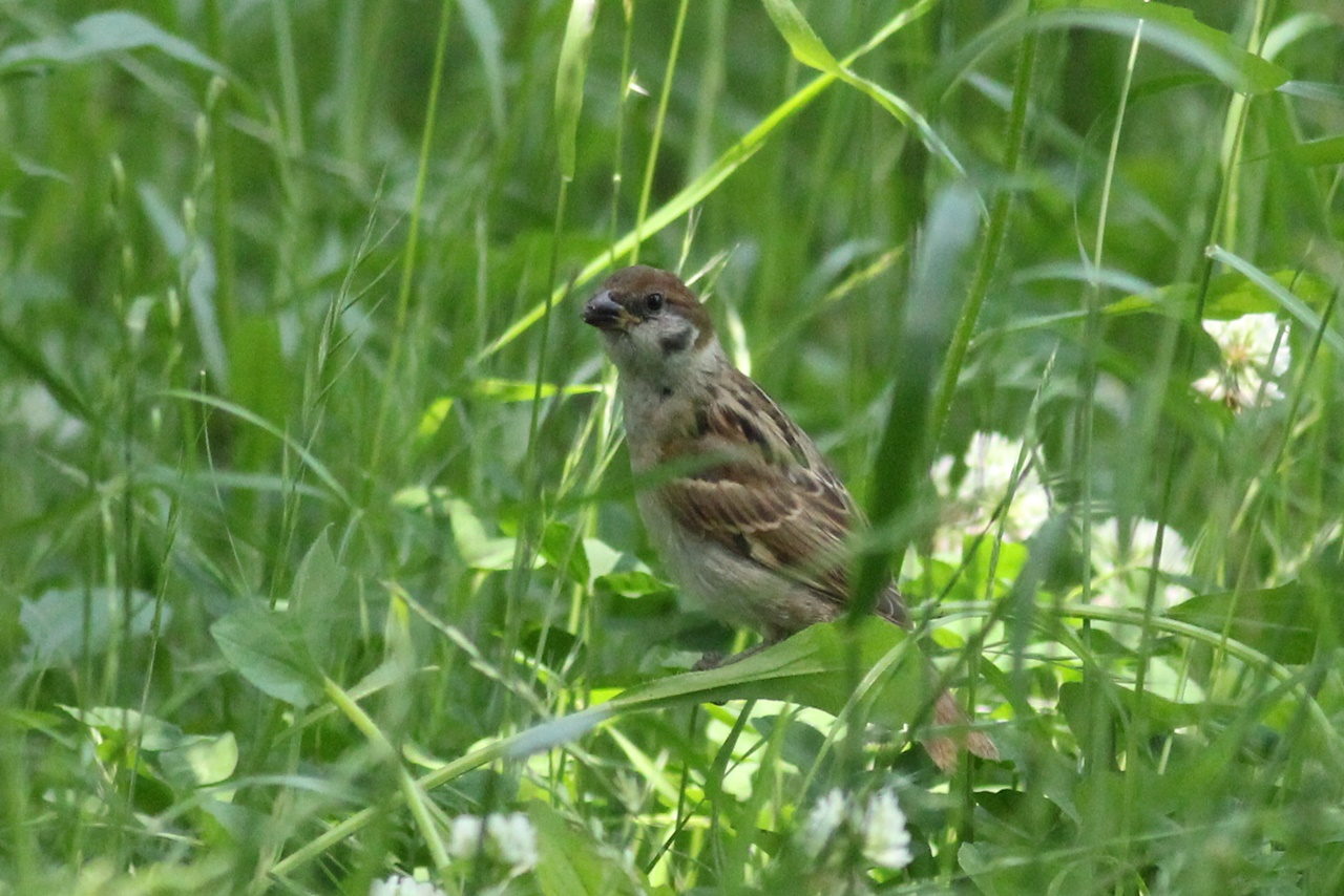 その後も親から餌をもらうスズメやメジロの幼鳥を観察できたのは、この時期ならではの光景。