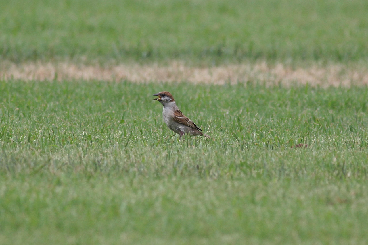 クヌギ林でチュンチュンと明るい声。探すとこの時期よく見られるようになったニュウナイスズメ。