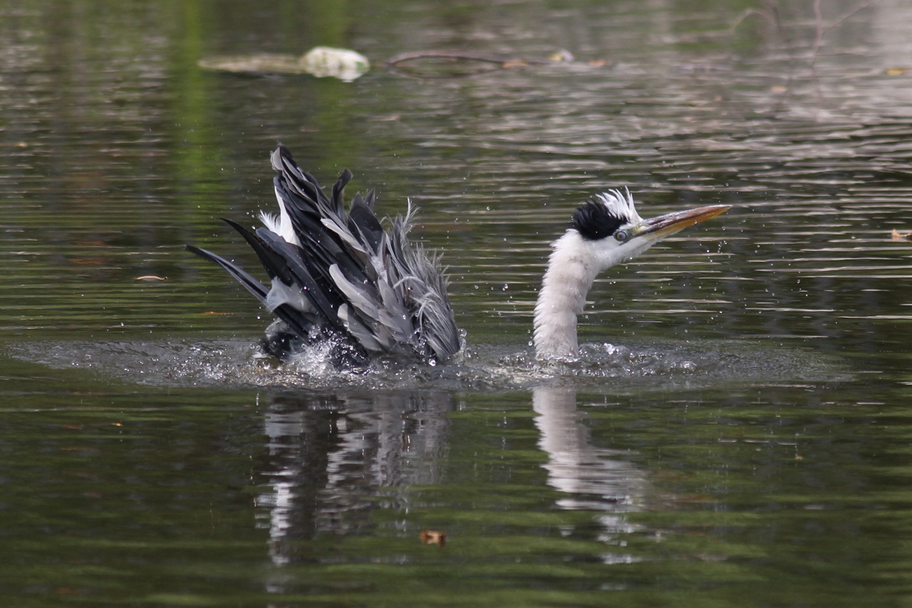 またみずすましの池ではアオサギが水浴びを始め、水面に粉綿羽が同心円状に広がる興味深い様子も見ることができた。