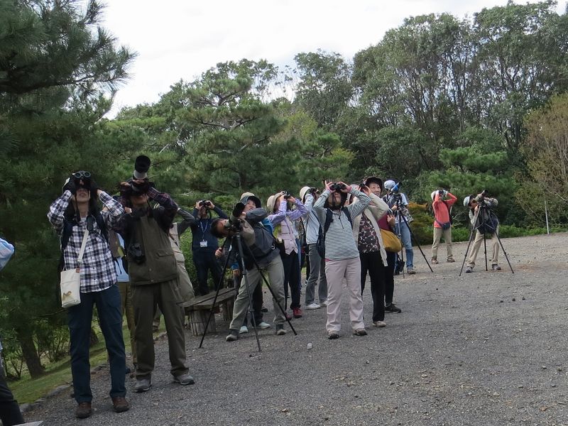 クヌギ林などでは秋の常連、エゾビタキ、コサメビタキのほかキビタキ、オオルリなども出てくれ、日本庭園ではツツドリのほか、西へ渡っていくノスリも観察できた。