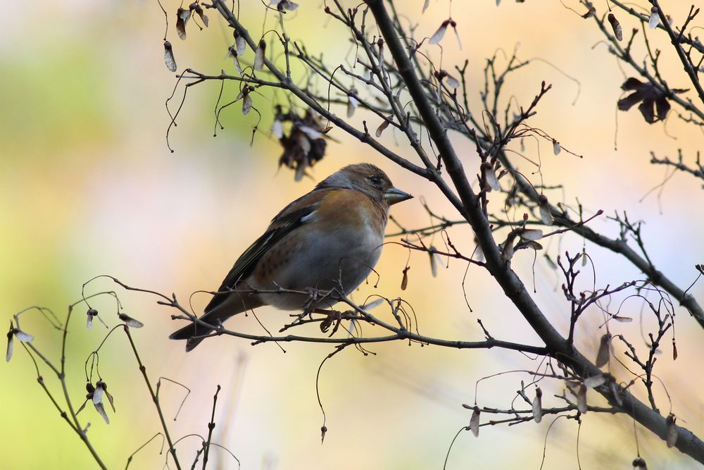アトリは数が少なかったがカワラヒワの群れに混じってアキニレやアメリカフウの実を食べていた。