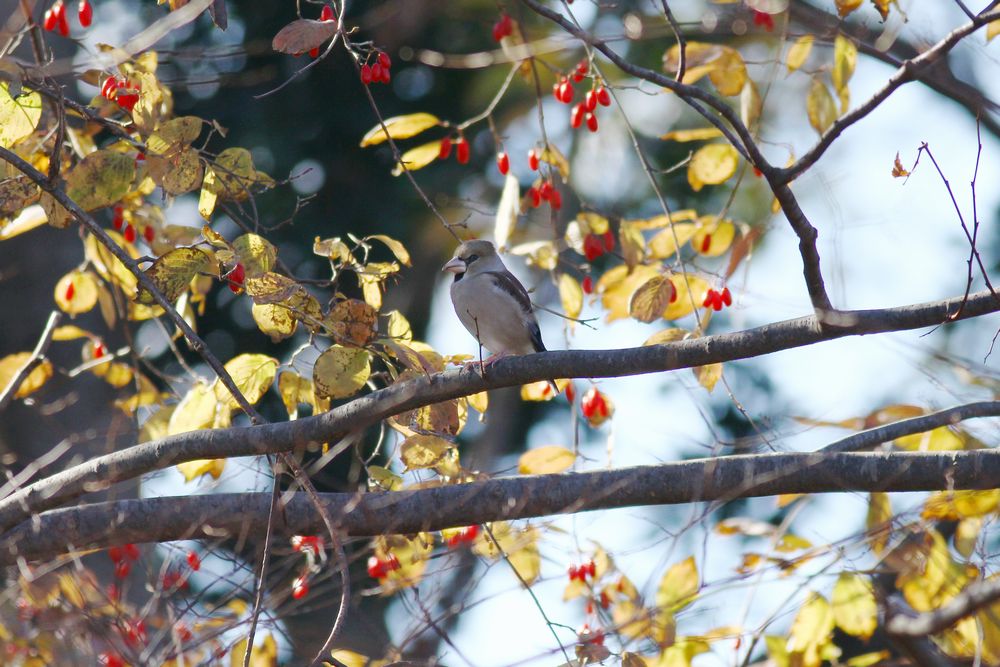 冬鳥に期待して歩いたが、前日には百羽前後の群れが飛び回っていたアトリがなかなか見られず、シロハラ、ツグミも見られなかったのが残念。