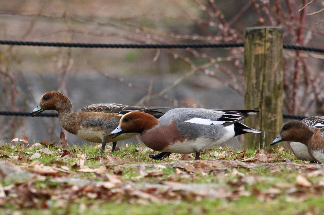 陸に上がって草を食むヒドリガモ(撮影:橋本昌宗さん)