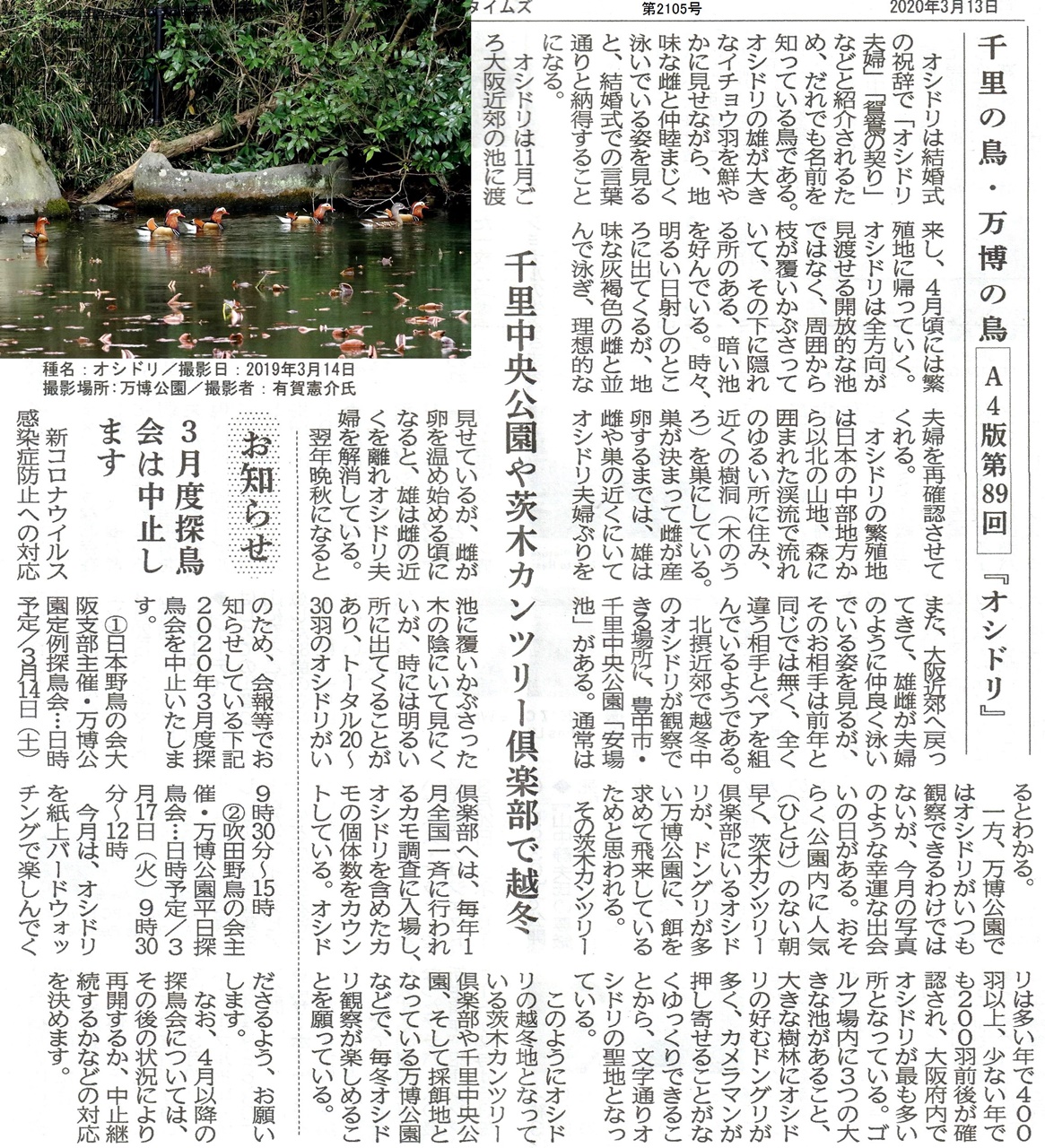 令和2年3月14日(土)/雨/参加者 名/観察種数 種/鳥合わせ