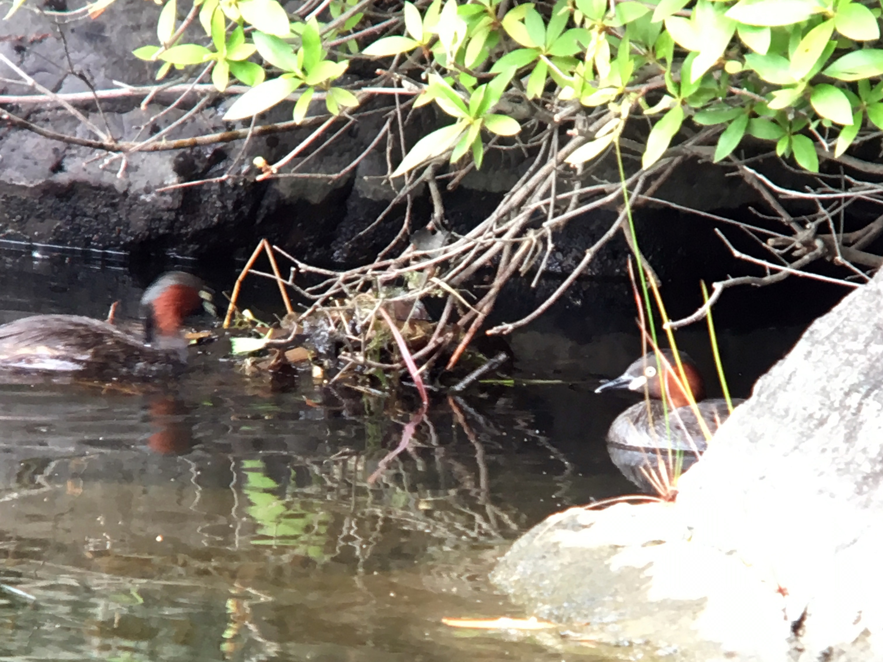 ⑨カルガモ ⑩カルガモ ⑪コゲラ ⑫巣作り中のカイツブリ雄雌