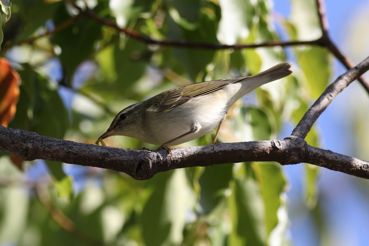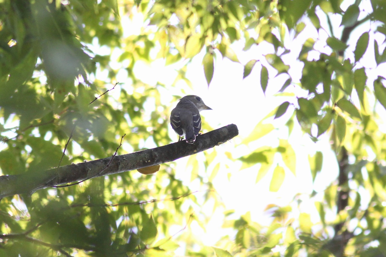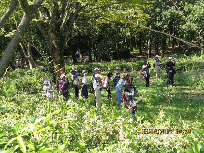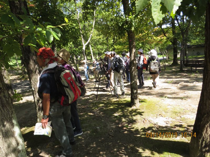 まだまだ残暑は厳しいが、秋の渡りに期待の探鳥会。この季節の常連のコサメビタキは数が少なく動きも早かったので全員で見られなかったのが残念。