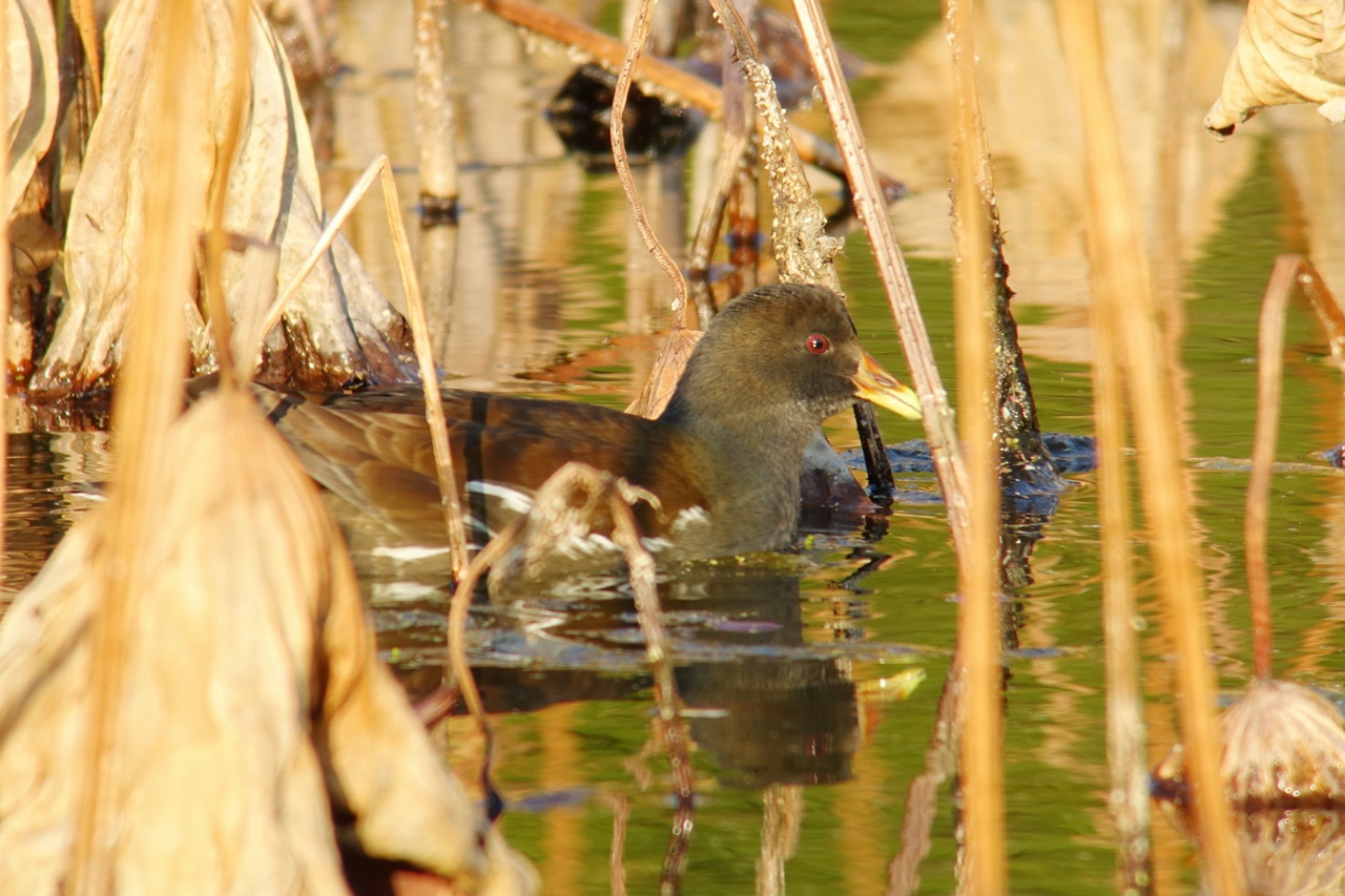 ⑨ヒドリガモ、⑩オオバン、⑪バン、⑫バン