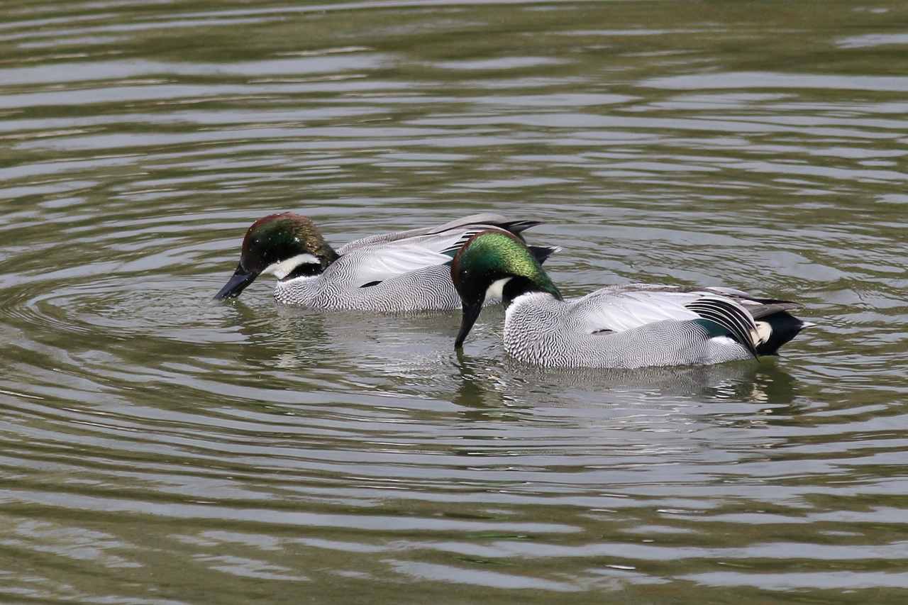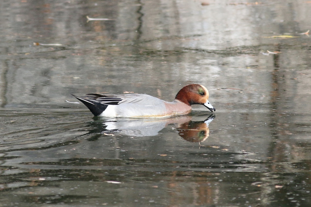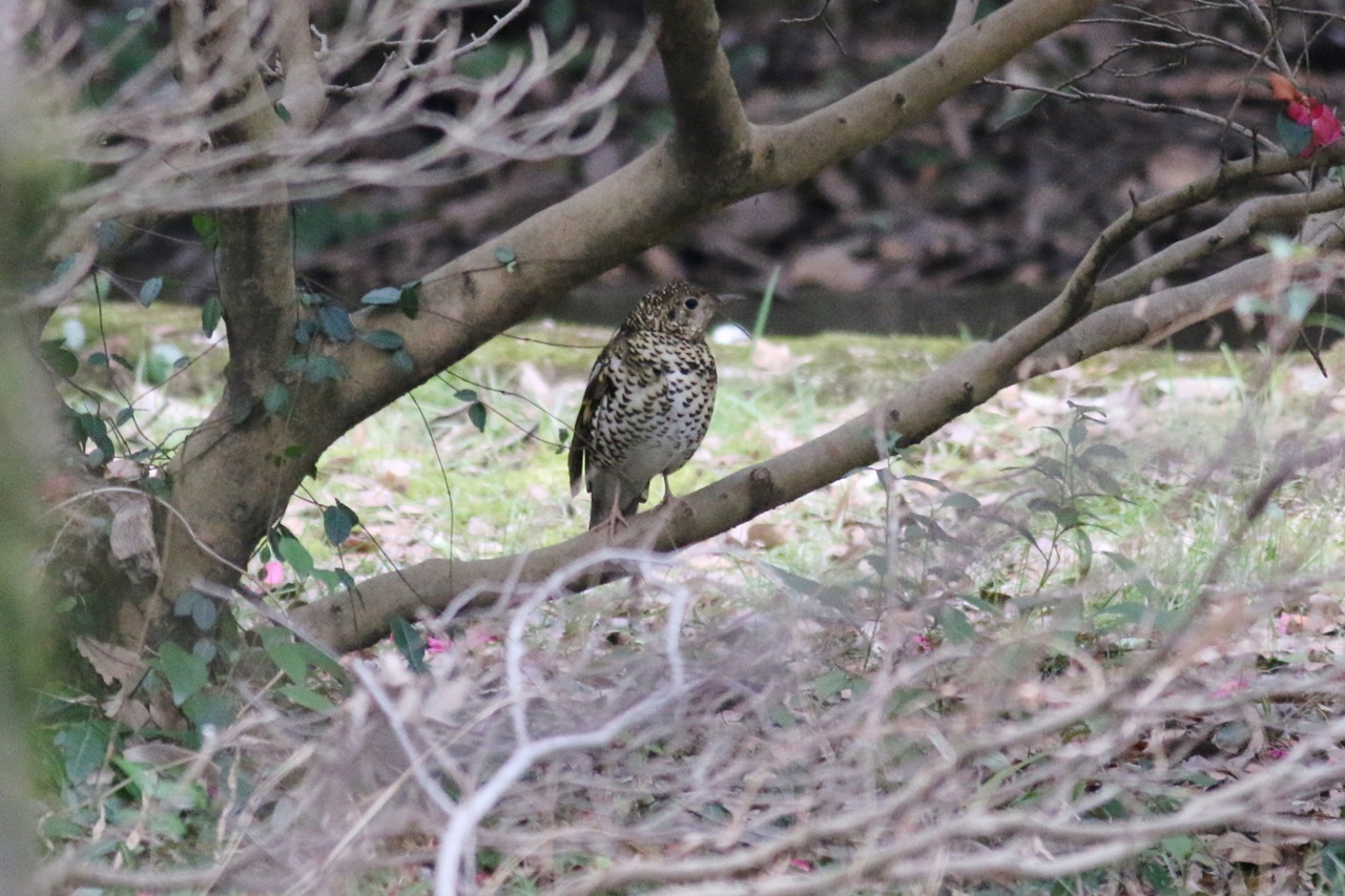 また人気者のカワセミは4カ所で見ることができ、至近距離で見ることができたときは歓声が上がった。またエンジュの木には、樹上の実や地上に落ちた実を食べに集まっているツグミの大きな群れを久しぶりに見ることができた。トラツグミは全員で見ることができなかったのが残念だったが、日本庭園の池では先月に続いて2羽のヨシガモ♂の、その美しい色彩や模様にも歓声が上がった。終了間際に冷たい雨が降り出したため、予定より早く鳥合わせとした。