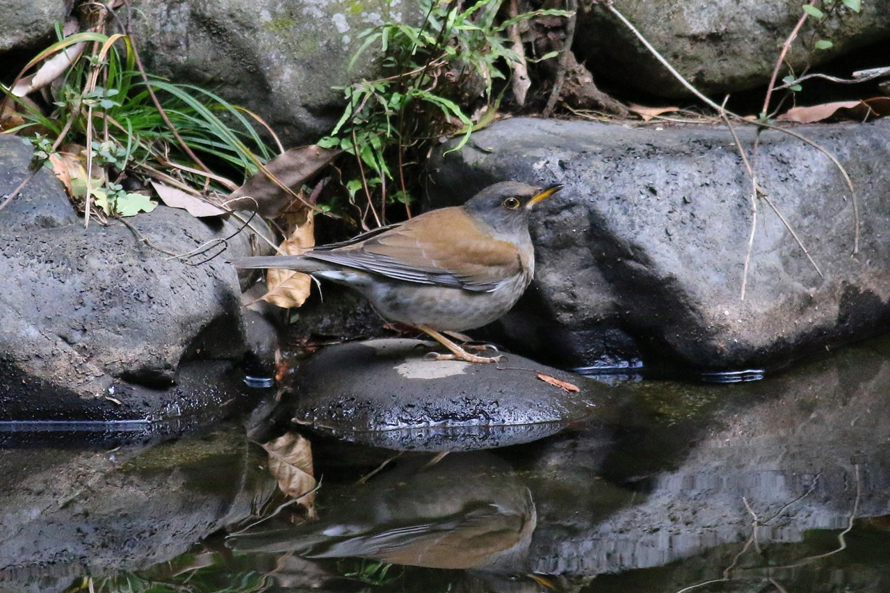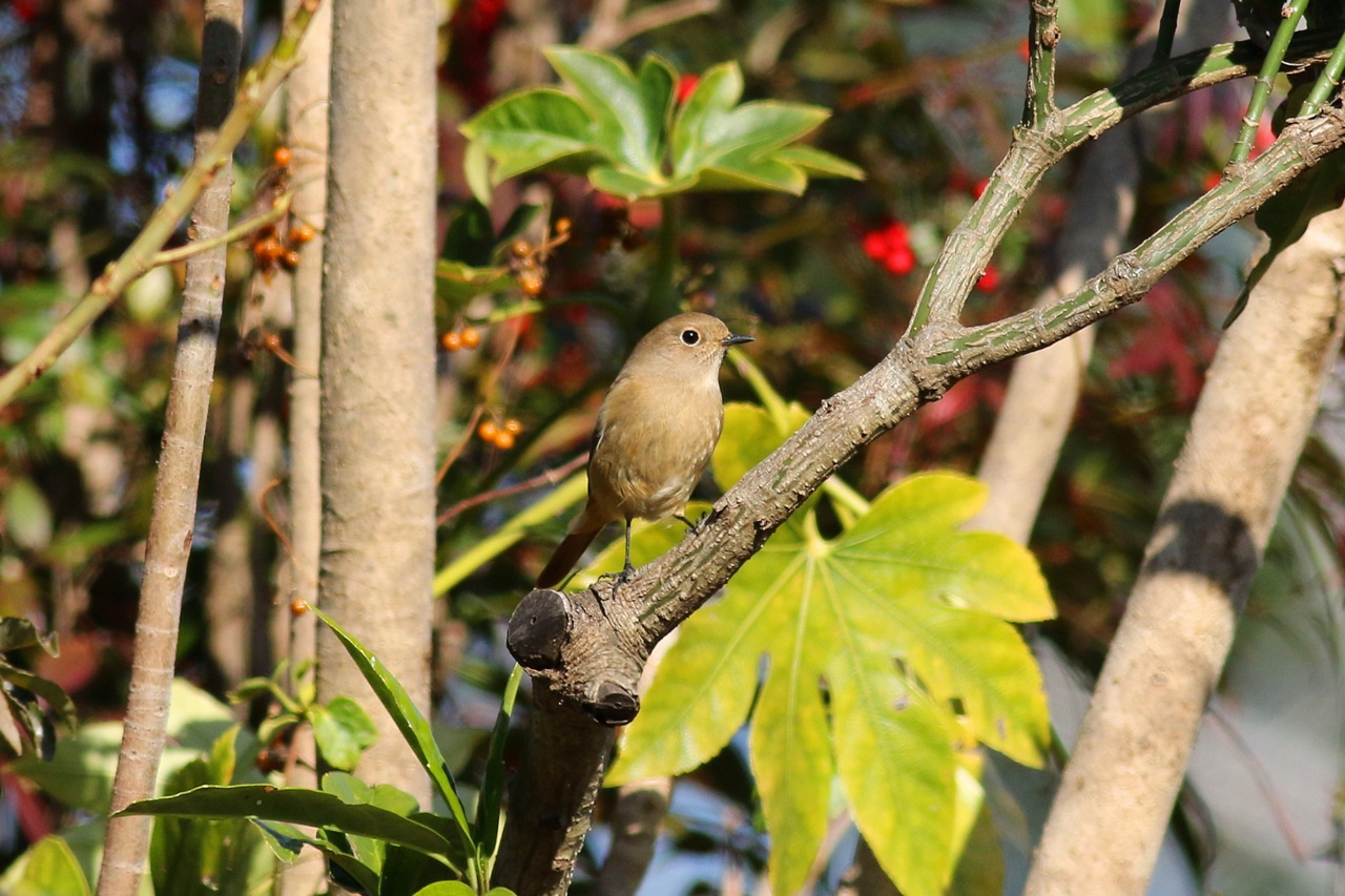 ジョウビタキは♂♀が各所で見られたが、ツグミは1羽だけで渡来が遅れているのかもしれない。日本庭園ではアトリの小群がケヤキの実を食べる様子が観察できた。