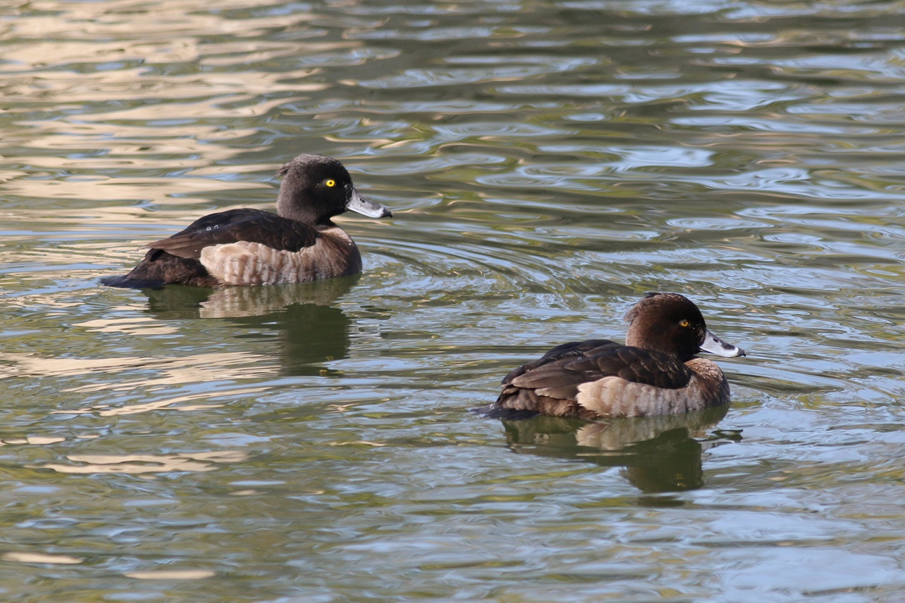 ⑨ヨシガモ、⑩ジョウビタキ、⑪コサギ、⑫カワラヒワ・シメ・カラの混群を見る