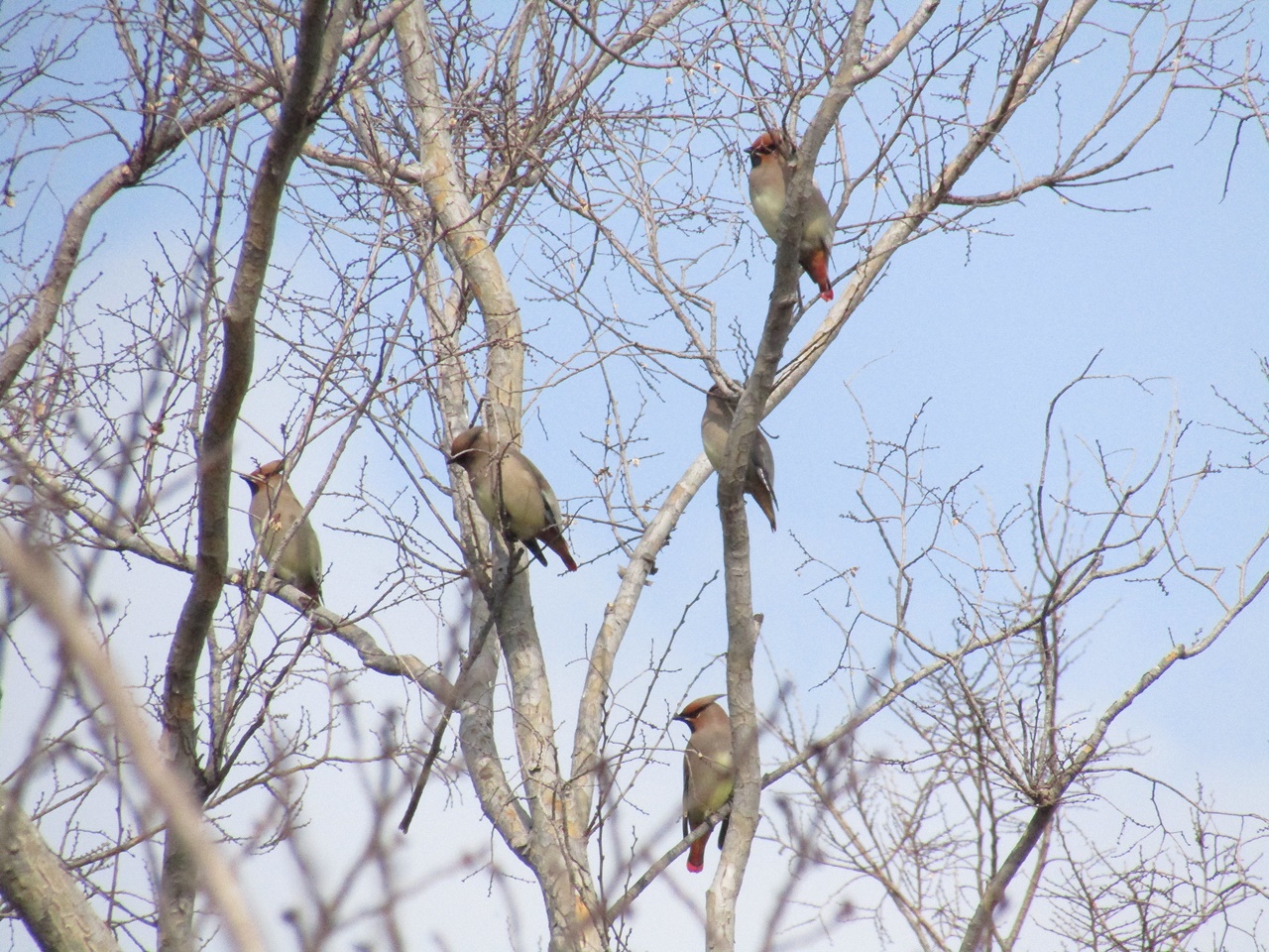 ⑨ヒレンジャク、⑩エンジュに集まるツグミの群れを見る、⑪レンジャクを見る
