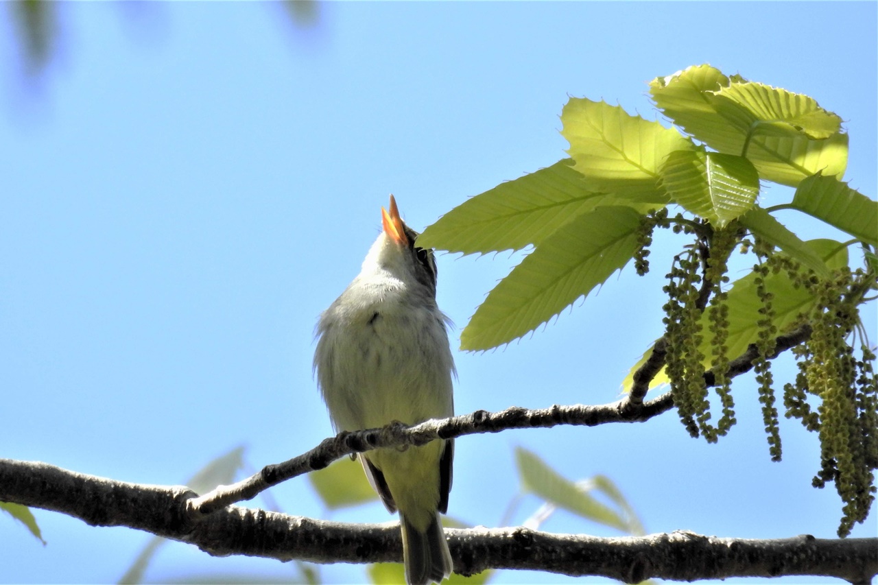好天に恵まれた探鳥会であった。サンコウチョウがいるとの情報を得て、普段のルートを変更したが、さえずり声のみで姿は確認できなかった。しかし、キビタキ・オオムシクイが確認できた。