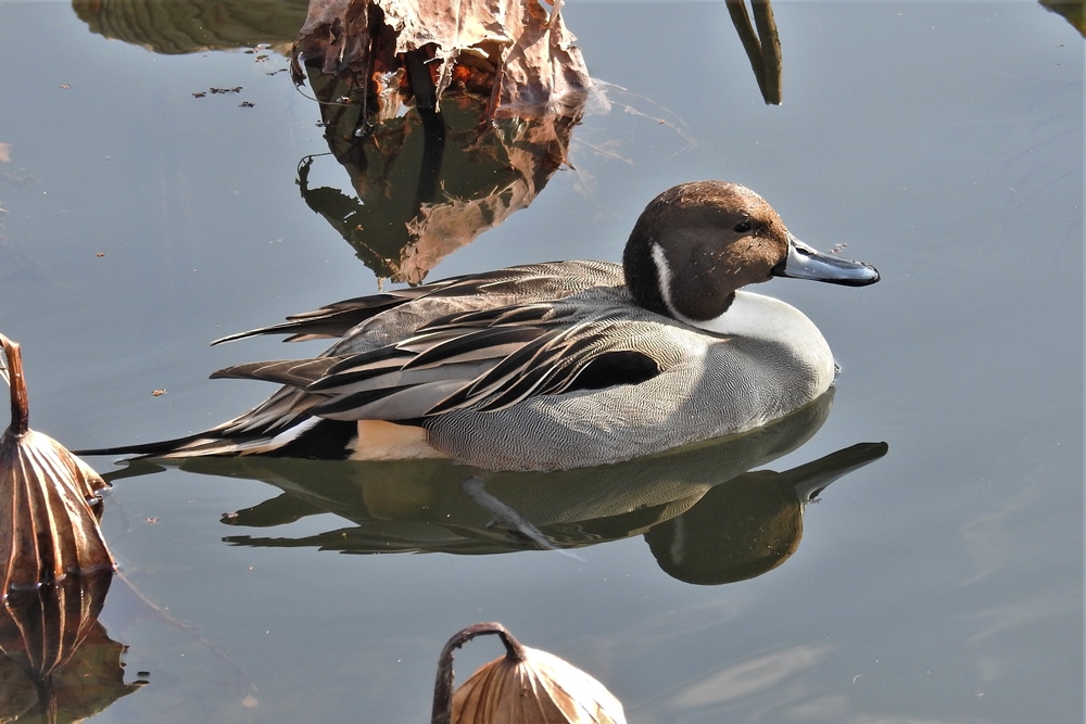 初冬の晴天に恵まれた定例会であった。服部緑地では、珍しくカンムリカイツブリが1羽観察できた。カモ類は個体数は少ないが、例年観察される種は一応そろったようだ。今シーズンは、キクイタダキの飛来が多いようだ。