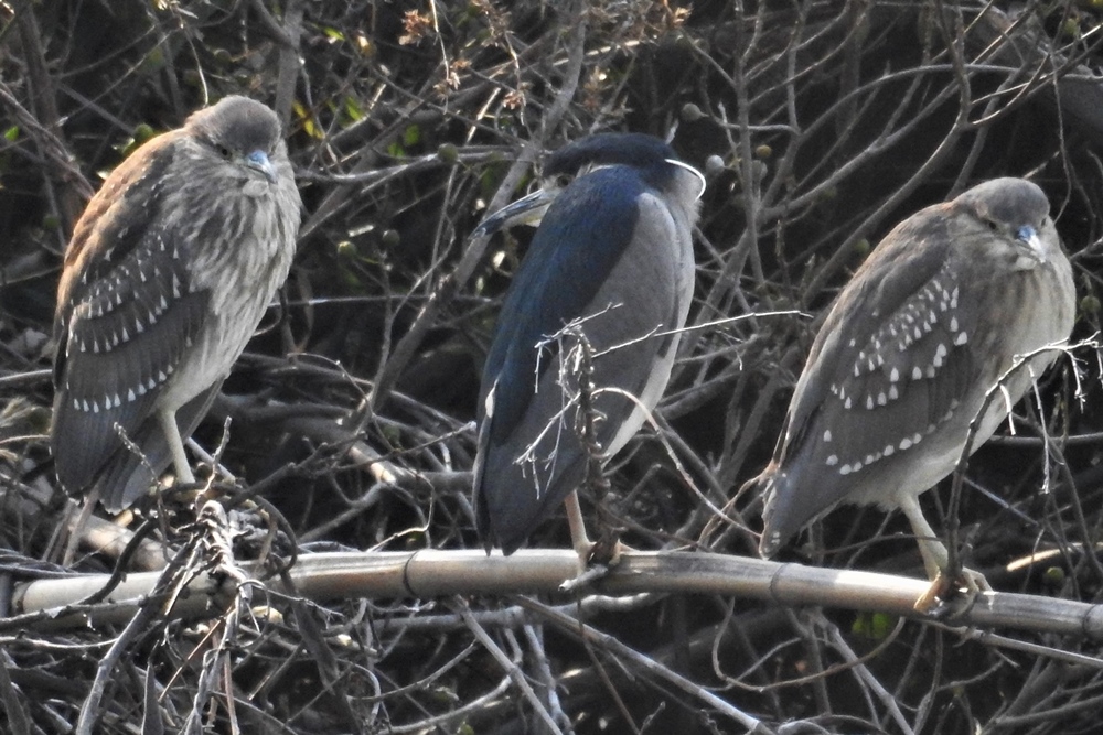 暖冬の今季、立春が過ぎ冬らしい気温での定例会であった。久しぶりにゴイサギが成鳥、若鳥合わせて8羽を観察できた。また、ミコアイサも♂1羽、♀4羽を見ることができた。アオサギとカワウは巣作りを始めている。
