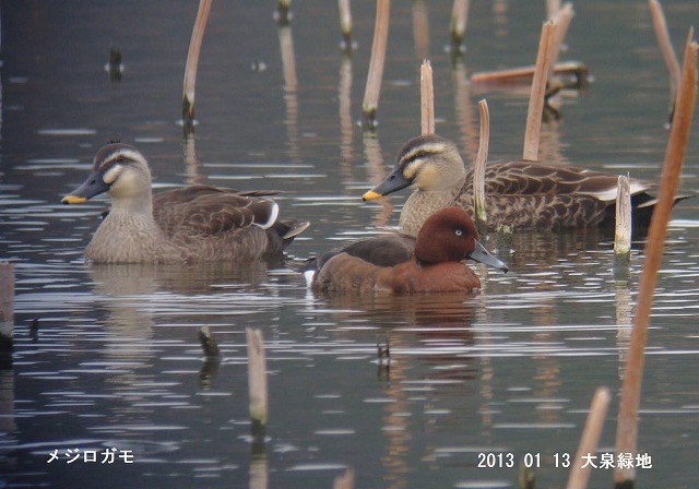 - 大泉池では先々月よりかなりカモ類の種類が増えている。
