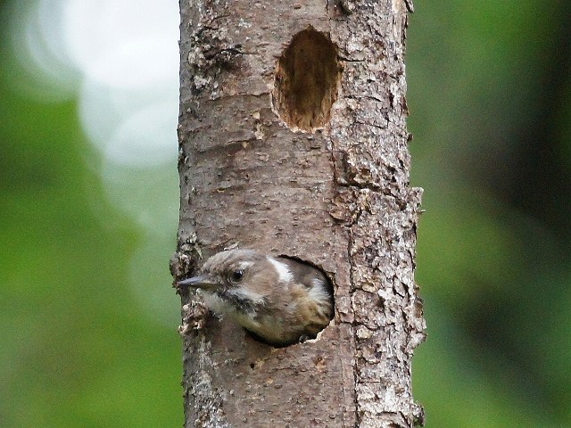 - 休憩後、コゲラが出入りしている巣穴を観察。