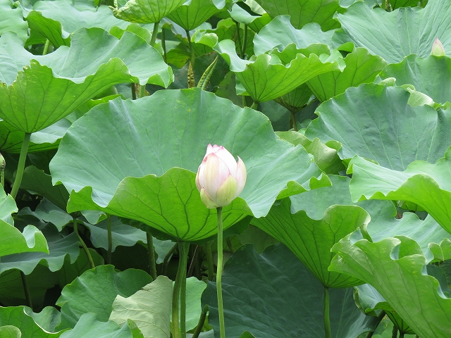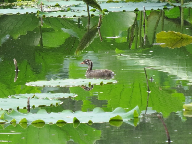 - ハスの群生している中では数カ所でカイツブリが営巣。