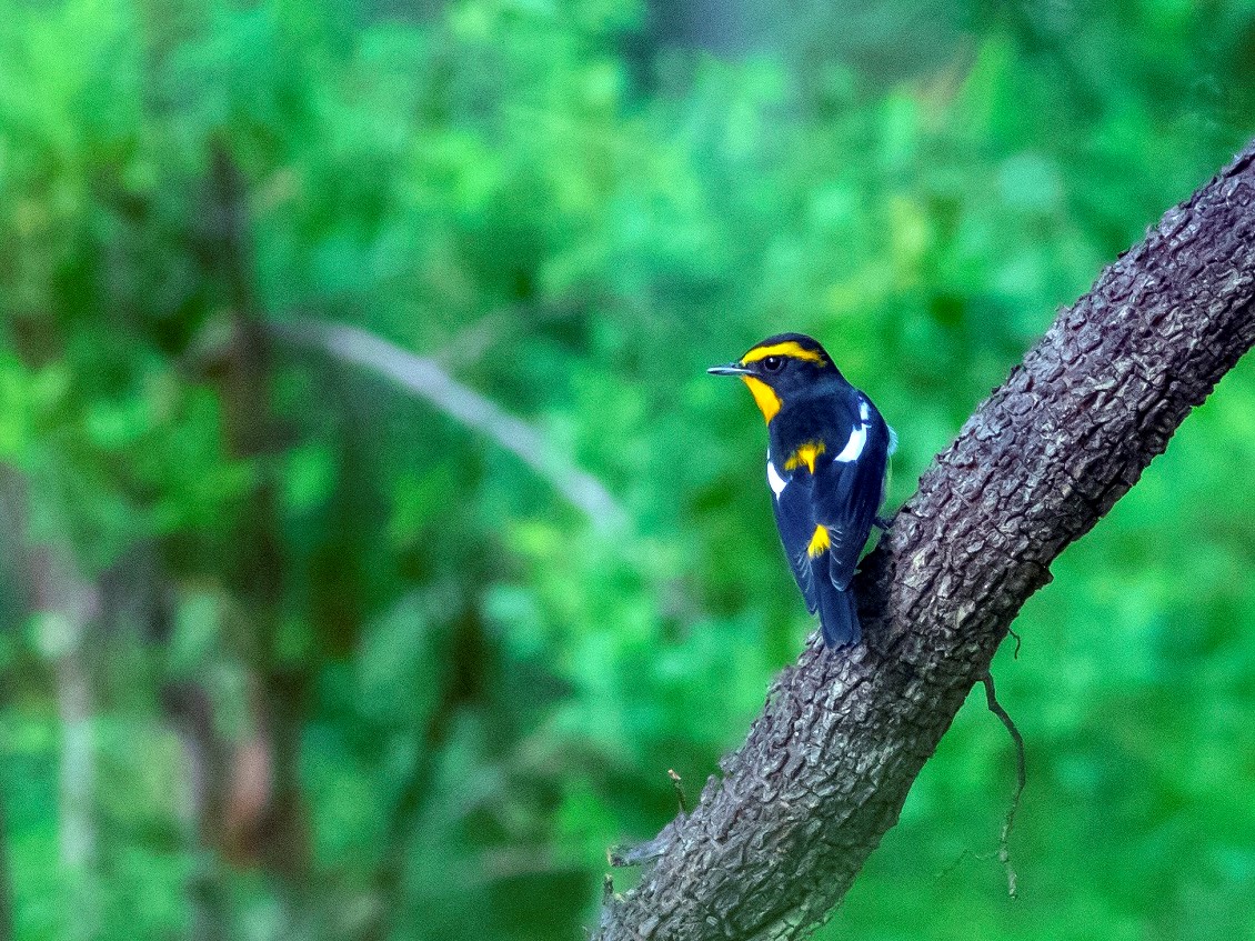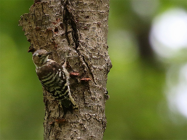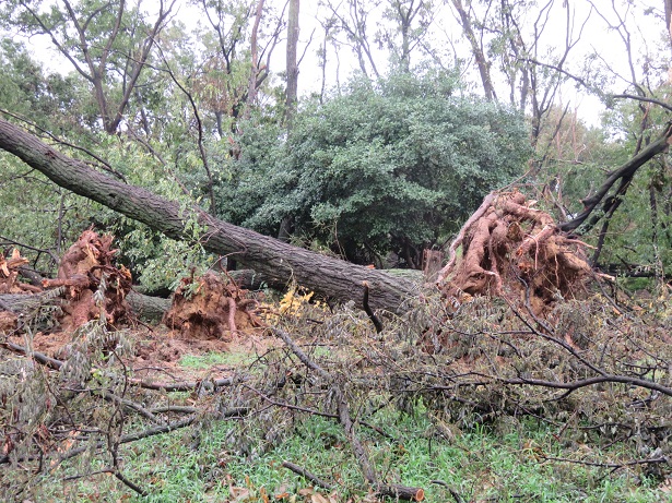 数多くの大木が根こそぎ倒れている光景に自然の脅威を感じながら、緑地の留鳥、コサメビタキ、サメビタキ、キビタキ、ツツドリなど渡り途中の野鳥、冬鳥として飛来したコガモなど35種を確認。