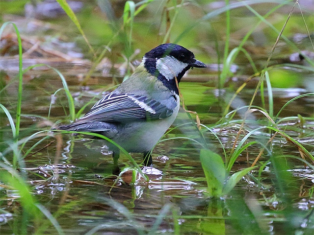 水流では、シジュウカラ、ヤマガラ、カワセミ。冬鳥はアトリ、シロハラ、アオジ。大芝生でツグミが採餌。