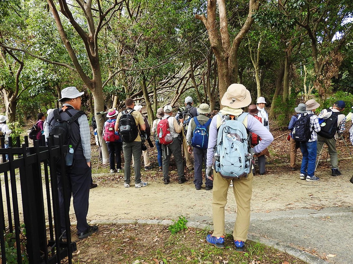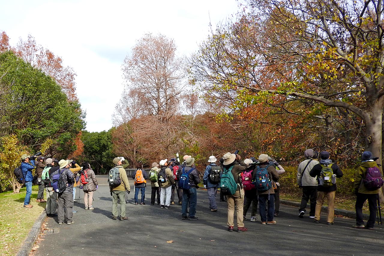 11月とは思えない汗ばむ陽気の中、小学生1名、大学生1名を含む総勢57名で探鳥会を実施。