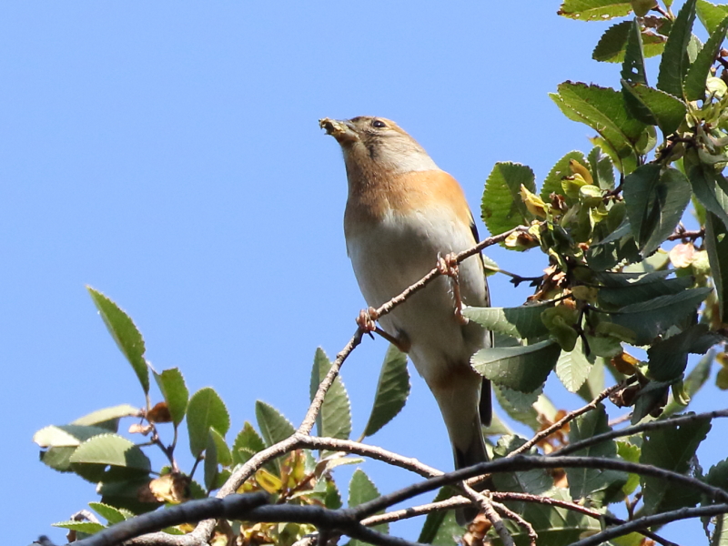 それでも、参加者の皆さんの執念で、シロハラ、ジョウビタキ、ジョウビタキ、アオジ、アトリ、シメ、イカル、ハイタカ、オオタカ、アオバト、渡り途中のムギマキなど43種を確認した。