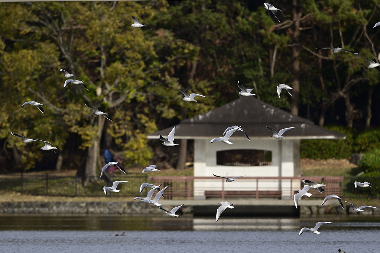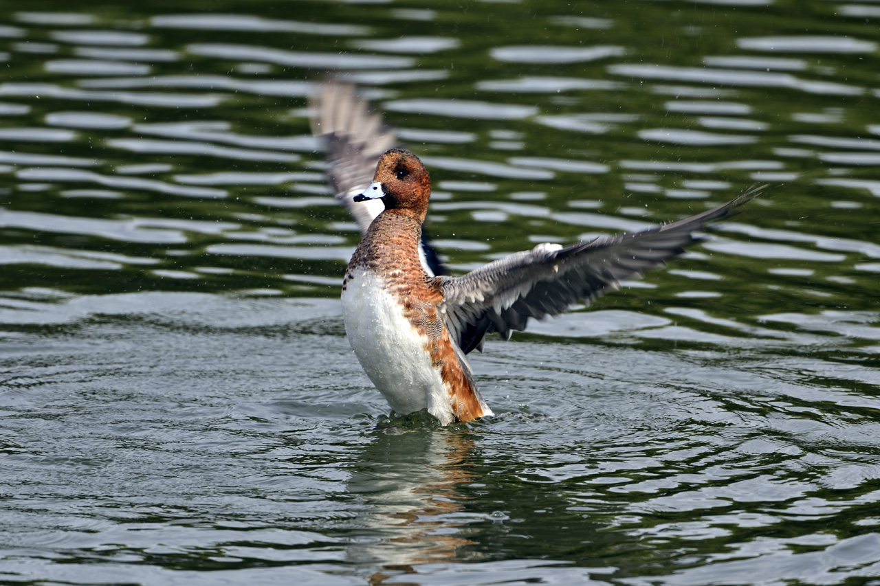 大泉池では、アカハジロ2羽、ホシハジロ、キンクロハジロ、ヒドリガモ、マガモ、カルガモ、コガモ、オカヨシガモ。