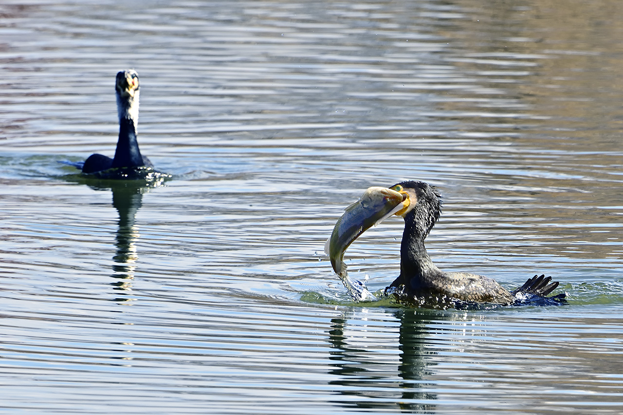 寒の戻りの寒い一日。カモ類も数種を残し殆ど去ってしまいました。