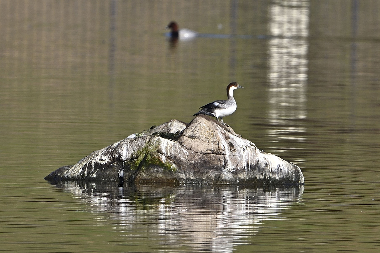 集合場所では、アカハジロ、ミコアイサなど、カモの仲間。カワセミ。上空をミサゴ。