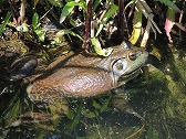 - アカガエル科 ウシガエル:普段は昼間鳴き声だけであまり姿を見ませんが今日は結構目立つところで休んでいま した。