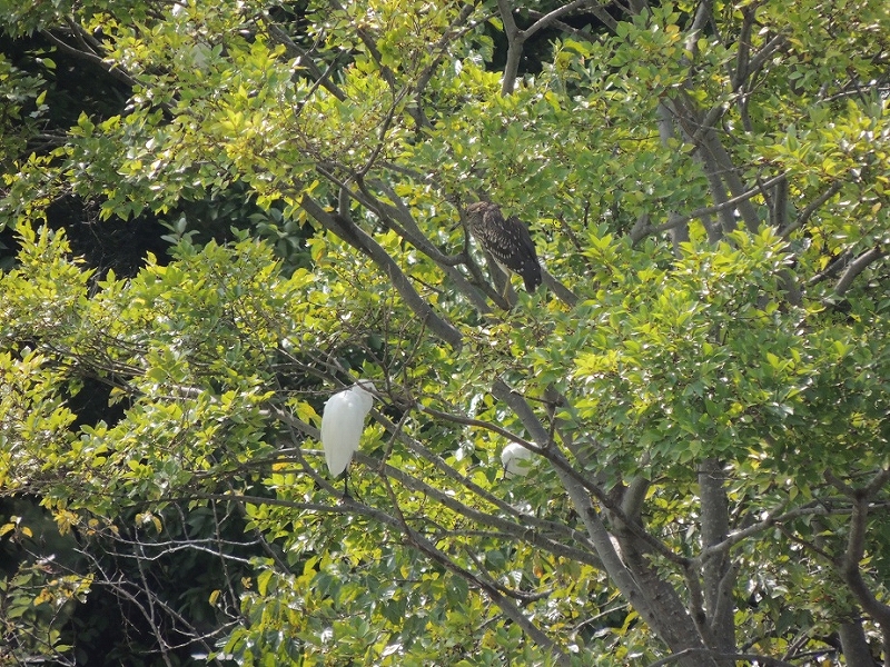 - 湿度が高く蒸し暑い一日。種数は少な目だが、子育て中の鳥が多く、親から餌を貰う幼鳥が見られた。チュウサギ1羽が久しぶりに見られた他キビタキの地鳴きも聞かれた。