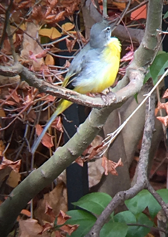 - 紅葉の中のキセキレイやカラ類も楽しめた。山田池初記録となるオジロビタキは数人がチラリと見られただけ。