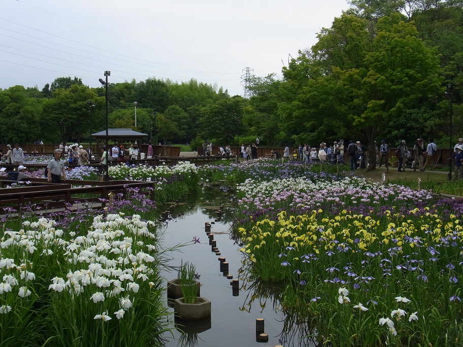 今月は花菖蒲園が開放されており紫陽花も咲いているので公園内は非常に沢山の人で賑わっていた。