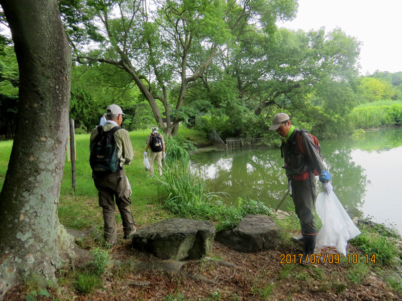 降水確率40%の天気予報の中、リーダーのほかに4名も会員さんが参加してくださった清掃探鳥会。