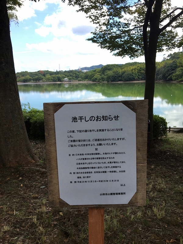 6年ぶりに池干しが実施される事になり、水抜きはこれからだが流入水が止められて池の一部では既に池底が見え始めている部分もある。