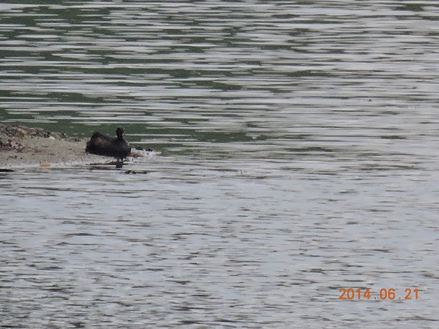 - 今日は支部のバーディー探鳥会と合流した。この日の一番のトピックスは、カイツブリが水辺に上がり立ち上がっていたこと。