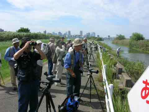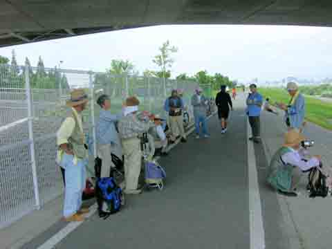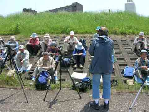 朝迄雨で危ぶまれたが、参加者10名集まり決行した。ムクドリ、スズメ、ヒバリの親子連れがあちこちで見られた。少人数で和気あいあい、お喋りタイムを堪能の探鳥会だった。 5月21日 快晴で風も涼やかであった。毛馬の固定堰でカワウ、アオサギ、ササゴイをかんさつした。対岸の柴島再生干潟にいるトウネン、アオアシシギ、キアシシギ、イソシギ、ソリハシシギ、コチドリを観察した。鳥あわせ時セッカが愛嬌を振りまいていた。今回ササゴイ9羽出現したのは嬉しかった。