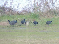 - 毛馬から城北公園の間の淀川の水面でヒドリガモを主に8種のカモを観察。陸地に上がり餌をついばむオオバンの珍しい場面も観られた。