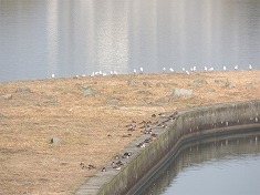 - 川面ではいつものヒドリガモ・キンクロハジロ・ホシハジロ・カルガモに加え、コガモ・オカヨシガモ・オナガガモなども出現した。