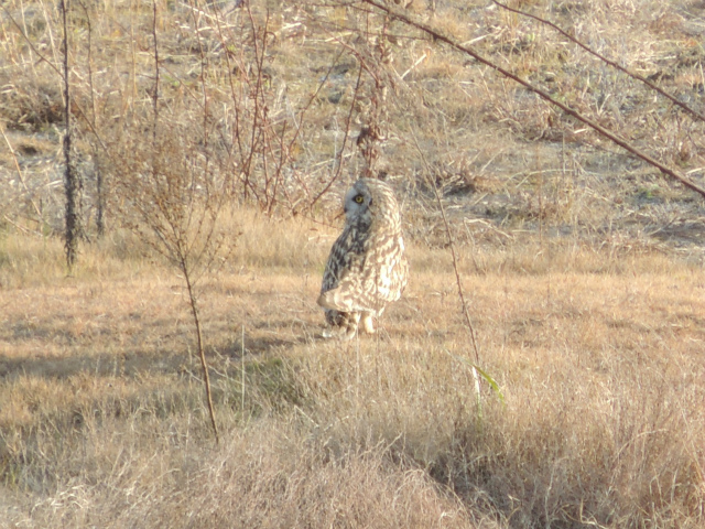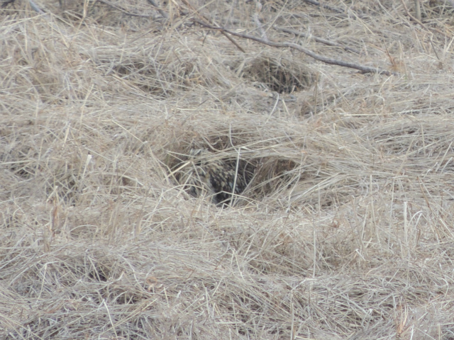 - 上流へ進みゴルフ場の跡地にてノスリと、一番の目的であったコミミズクを草原のくぼみで休む姿で観察した。